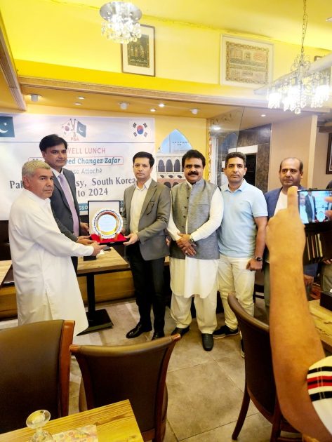جنوبی کوریا: پاکستان بزنس ایسوی ایشین کی جانب سے ڈیفینس اتاشی کرنل سید ظفر چینگیز کے اعزاز میں فیرل پارٹی کا اہتمام