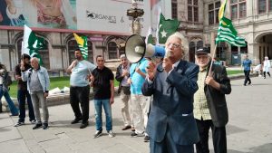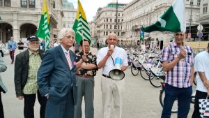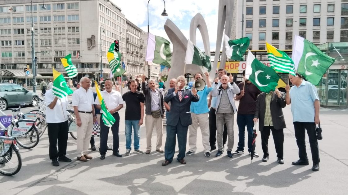 ویانا: چیئرمین کشمیر فریڈم فرنٹ آسٹریا پروفیسر مسرت شوکت اعوان کی سربراہی میں بھارتی سفارت خانہ ویانا کے سامنے یوم استحصال کشمیر کے موقع پر احتجاجی مظاہرہ