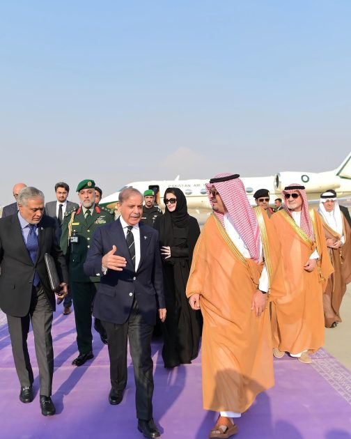 وزیراعظم شہباز شریف وفد کے ہمراہ سعودی عرب پہنچ گئے، جدہ کے گورنر نے استقبال کیا