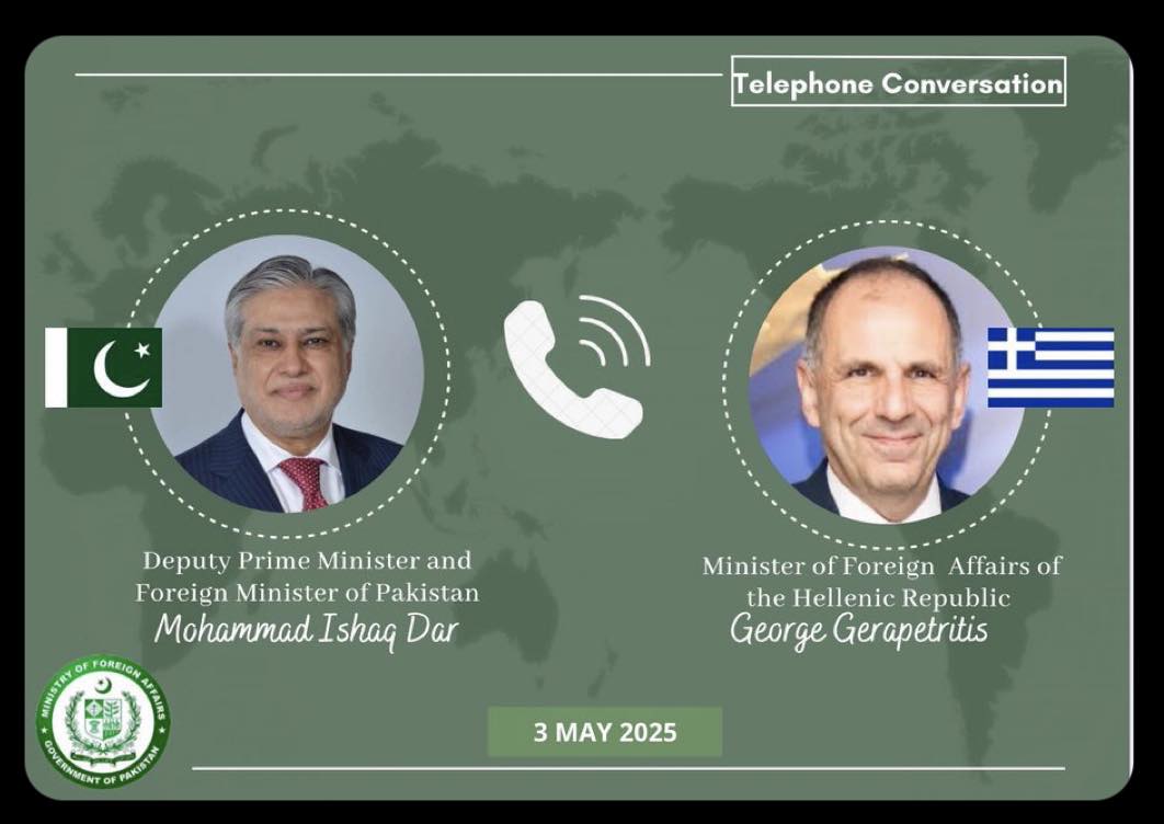 پاکستانی ڈپٹی وزیراعظم و وزیر خارجہ، سینیٹر محمد اسحاق ڈار نے یونان کے وزیر خارجہ جارج ییراپیتریس سے ٹیلی فون پر بات چیت کی۔ یونان ..مزید پڑھیں